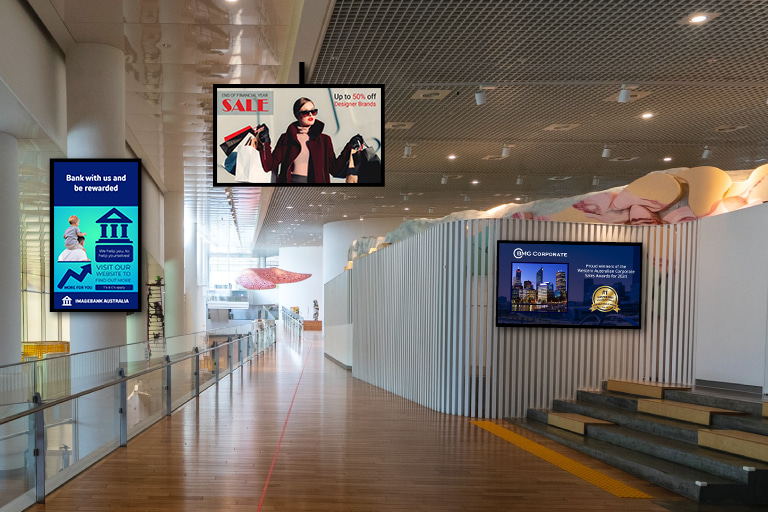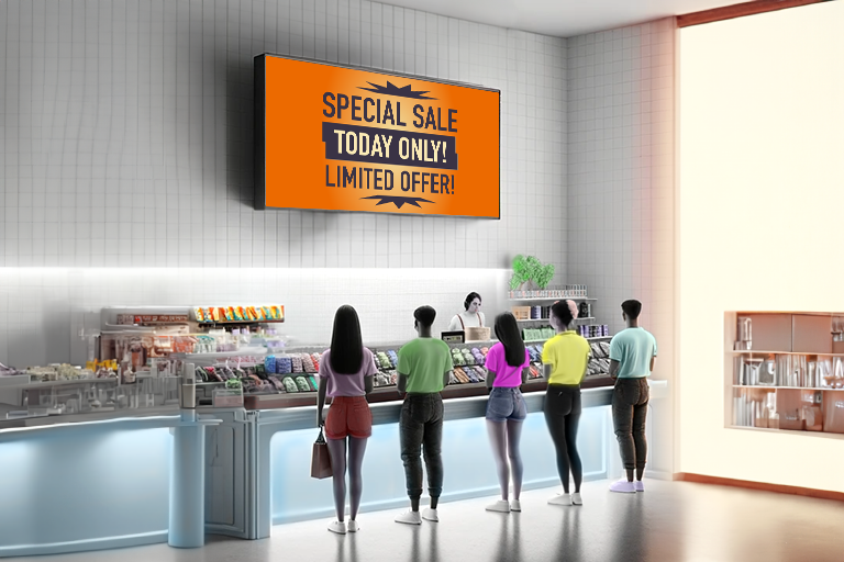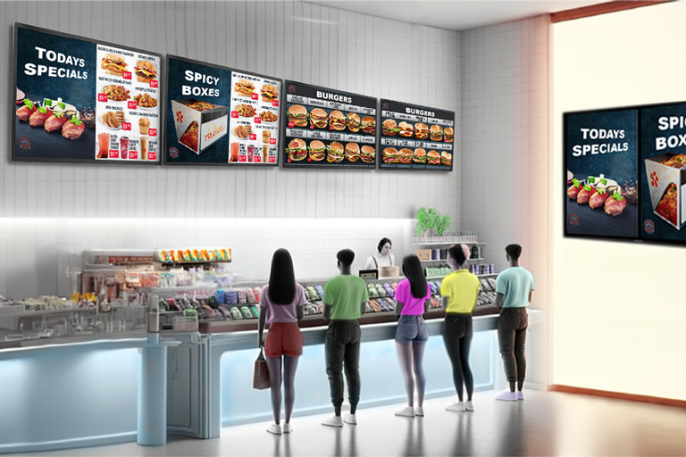 Wall and ceiling mounted displays, menu boards, video walls and everything in between.